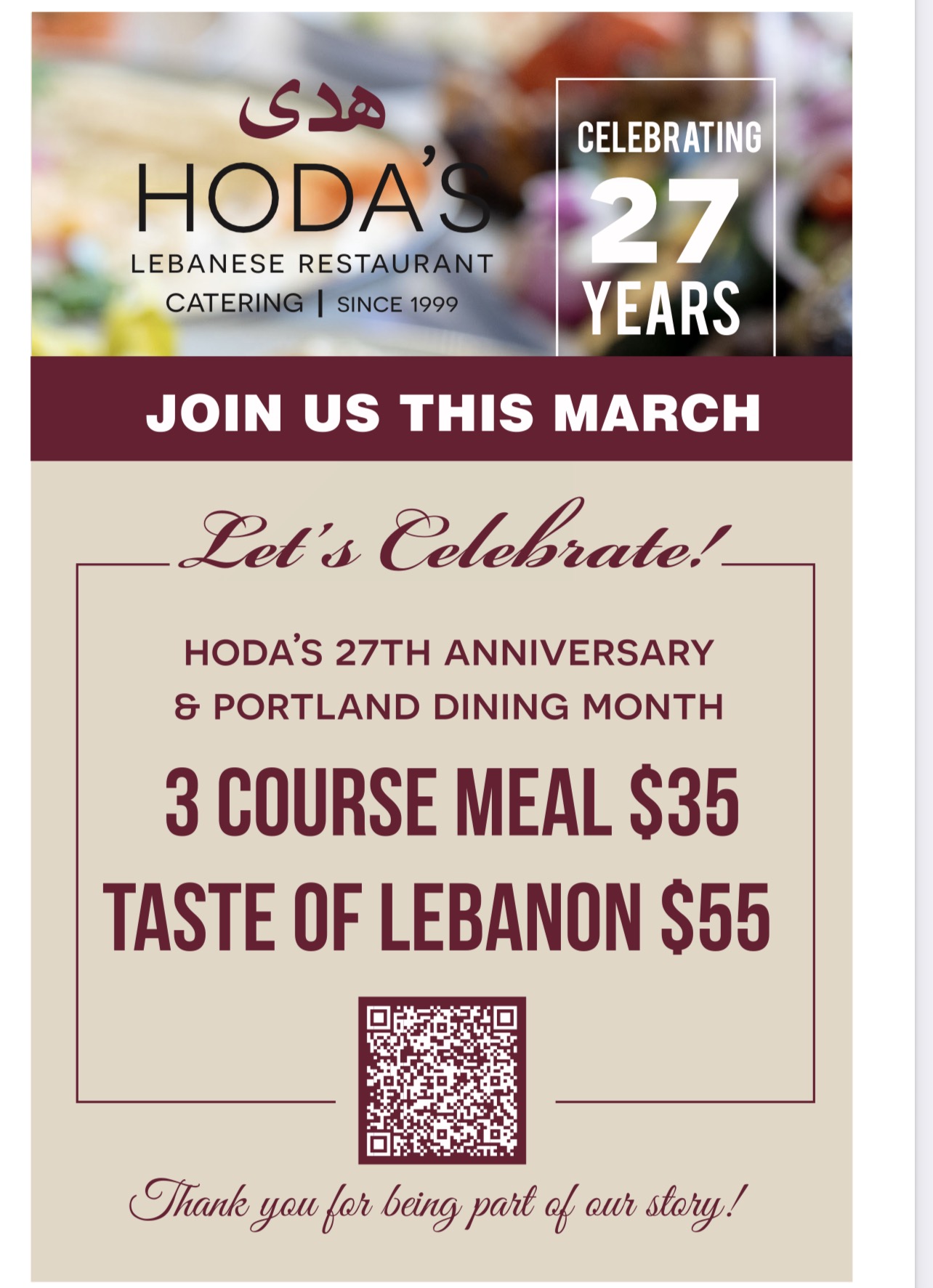 Hoda’s Middle Eastern Cuisine builds on a family tradition of delicious food and warm hospitality since 1999. Owner and culinary master, Hoda, is a second-generation Portland restaurateur who grew up in Beirut where she cultivated a palate for the highest quality, authentic Lebanese cooking using Farm to Table ingredients.